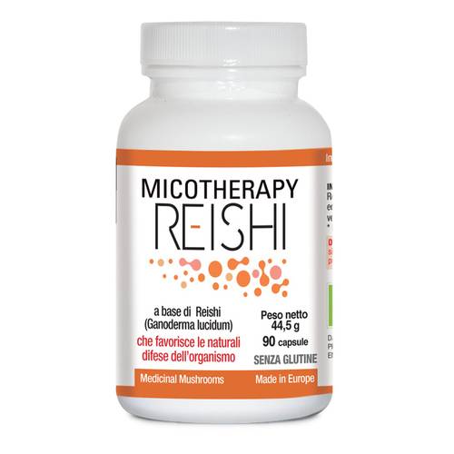 MICOTHERAPY REISHIDescrizione Integratore alimentare biologico a base di Reishi (Ganoderma lucidum) titolato in polisaccaridi ed ergotioneina che favorisce le naturali difese dell’organismo. Ingredienti Reishi* (Ganoderma lucidum P. Karst) sporophorum ed estratto secco tit. 25% in polisaccaridi; capsula vegetale: (idrossipropilmetilcellulosa). * Biologico. Senza glutine. Caratteristiche nutrizionali Valori medi per 3 capsule Ganoderma lucidum e.s. app. in polisaccaridi app. ergotioneina 960 mg 240 mg 227 mcg Ganoderma lucidum sporophorum 240 mg Modalità d'uso Si consiglia di assumere 3 capsule al giorn...