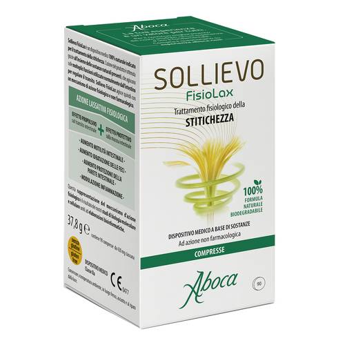 SOLLIEVOFisioLax Descrizione Sollievo FisioLax è un dispositivo medico 100% naturale indicato per il trattamento della stitichezza. L’azione del prodotto è ottenuta grazie all’insieme delle sostanze naturali presenti, che agiscono sulle molteplici funzioni utilizzate normalmente dall’intestino per regolare il transito. Sollievo FisioLax agisce quindi con un meccanismo di azione fisiologico e non farmacologico. Sollievo FisioLax è ottenuto attraverso processi di lavorazione completamente naturali che non utilizzano solventi o altre sostanze di sintesi chimica. Sollievo FisioLax è validato secondo i seguenti parametri: - impronta digi...